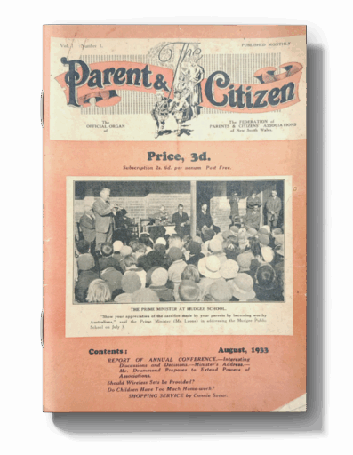 The Parent & Citizen Journal is printed quarterly with an average print run of 2,200. Copies are distributed directly to member P&C Associations in public schools in New South Wales and circulated to parents, teachers, librarians, school administrators, the Minister for Education, Parliamentarians, Department of Education officers, universities and other interested members of the community.