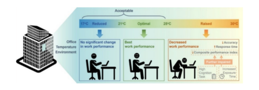 Optimal temperatures between 21 to 25 degrees for office workers